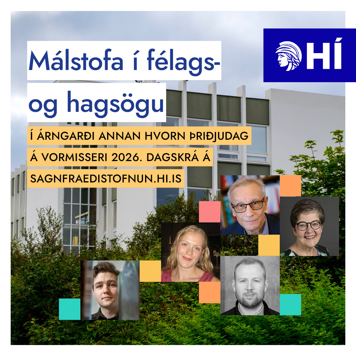 Sagnfræðistofnun Háskóla Íslands efnir til málstofu um félags- og hagsögu á vormisseri 2026. Fyrirlestrarnir verða haldnir í stofu 304 í Árnagarði annan hvorn þriðjudag kl. 16:00-17:00, frá og með 27. janúar til og með 24. mars.