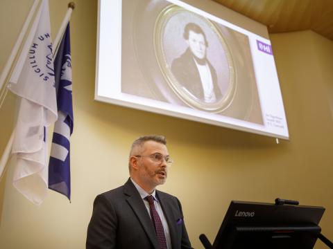 Steinunn Kristjánsdóttir, forseti Sagnfræði- og heimspekideildar, stjórnaði athöfninni sem fór fram í Hátíðasal í Aðalbyggingu Háskóla Íslands 25. febrúar síðastliðinn. (Smellið hér til að skoða myndir frá vörninni).